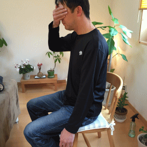 先ず、座位(椅子に座った状態)で首の後ろと前を治療し、続いて腕の治療をします。塩見様は5、6年前に来院されていていたので「※体の回復についての理解」が早い方です。