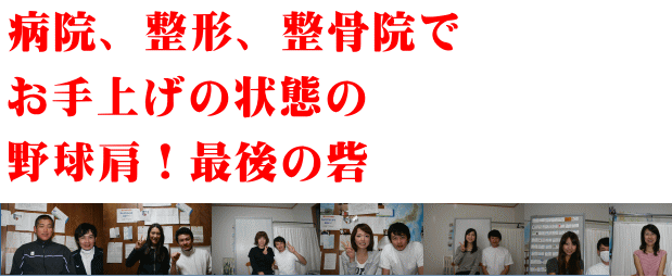 病院や整形外科、整骨院や名医と言われる医者の治療で完治しなかった野球肩でお困りだった肩の口コミや評判評価を掲載させていただきます。